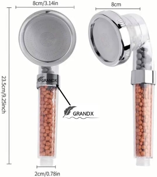 GRANDx Handheld Shower – Water-Saving, Filter Beads, 3 Spray Modes